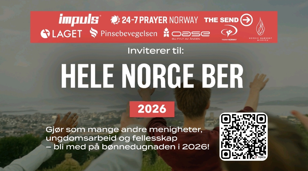 «Hele Norge ber» er bønneaksjonen der ungdomsarbeid, menigheter og bønnefellesskap utfordres til å være med å be uavbrutt 24/7 for Norge gjennom hele 2026. Bakgrunnen for initiativet er at man ser og hører om en økende søken etter Gud og hans nærvær i den yngre generasjonen, skriver Impuls på sine hjemmesider.Dette vil vi være med på i Hjertehuset. Og første dato som er satt opp er 14. februar, da skal vi ha bønn i Hjertehuset 24 timer. Det blir også noen lovsangsøkter underveis.